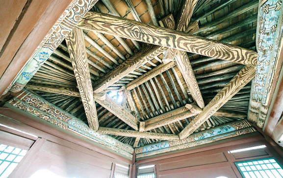 这座古建筑曲折回环、小巧玲珑,空间丰富、层次多变,布局紧凑、错落相依,参观起来颇有些不容易。由于地势所限,建筑结构特殊,其连廊、楼梯等处十分狭窄,很多地方甚至仅能容纳一人,参观者不得不小心翼翼地移动。